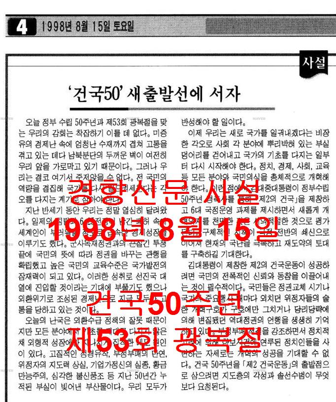 경향신문 1998-8-15 ( 건국 50 주년, 제53회 광복절 )