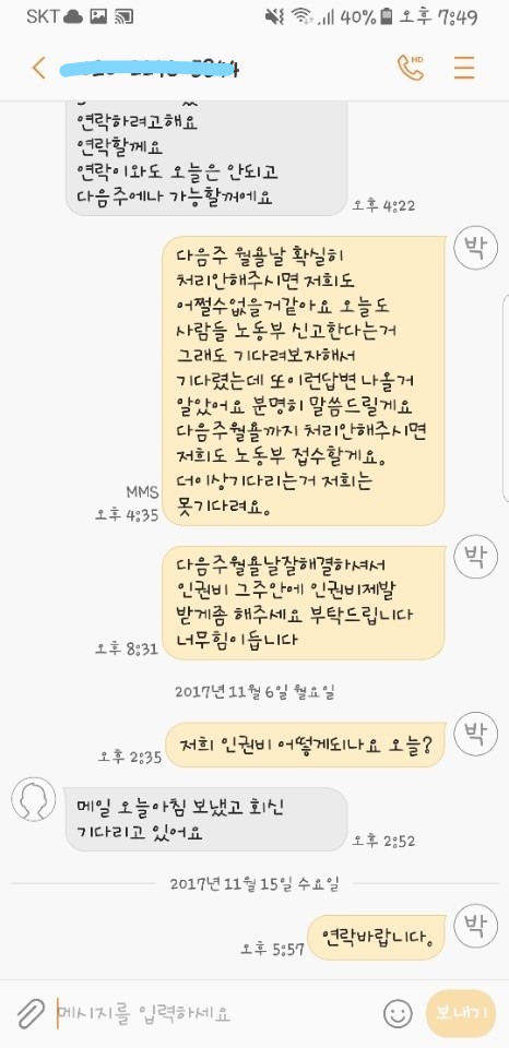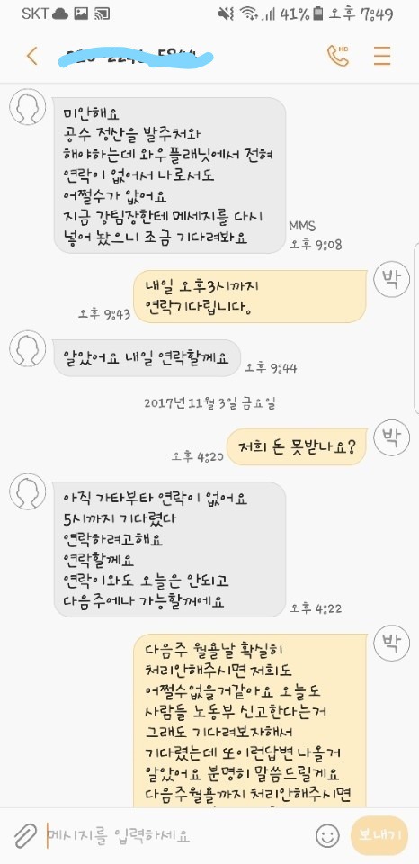 중요한건 돌아온뒤 건우산업(하청업체)이란곳에서 임금을 한푼도 지급을 안하는거였습니다 돌아온뒤 1~2주뒤에