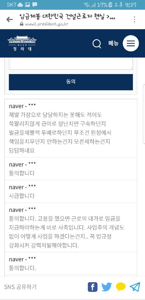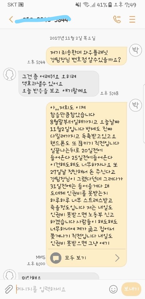 지겹고 매일 스트레스를 받으며 살고있습니다 아니 왜 일을했는데 돈을 못받나요? 진짜 이게 대한민국 건설 근로자들 현실인거 같아서 정말 화나고 열받습니다 진짜 최소한의 임금도 못받고 아직까지도 정확한 답도 듣지못하고 돈 한푼 받지 못하고있습니다 제발 도와주세요 여러분 이번사건계기로 노동자들을 위한 법은 바뀌어야한다고 저는 생각합니다.
