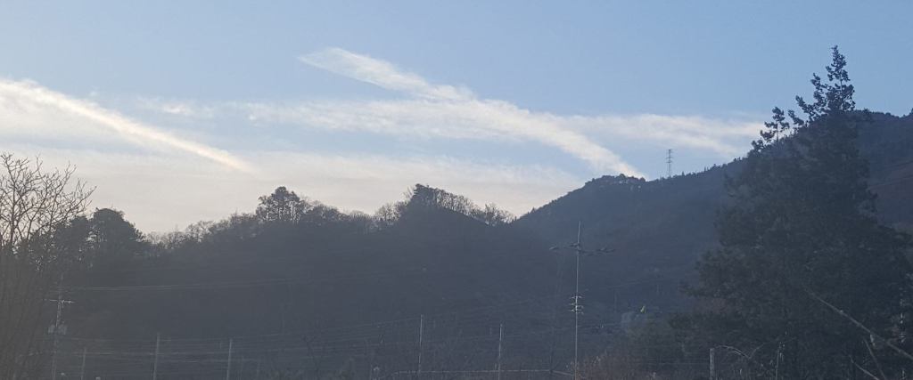사진설명 : 해질 무렵 창문을 열고 바라본 남쪽 하늘과 앞산의 풍경이다.