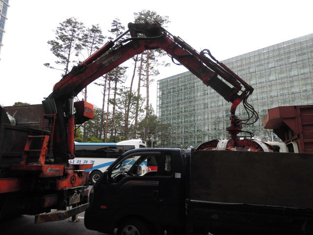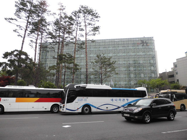 중국인 투숙 호텔고층 구청대로건너편에 버스는 구청입구대로에 펼쳐놔 대기
