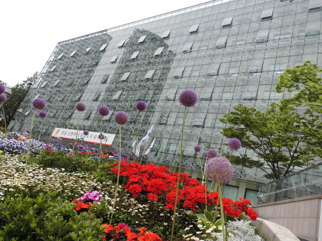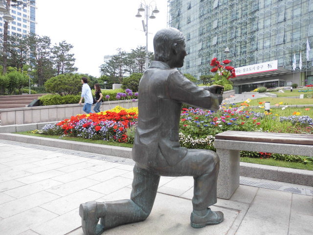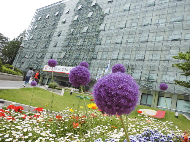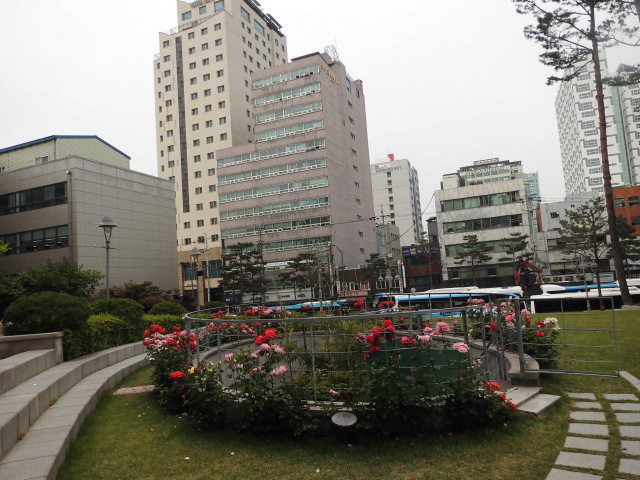 꽃방석에 앉즌 중구구청 해인들의 눈길을 끌려