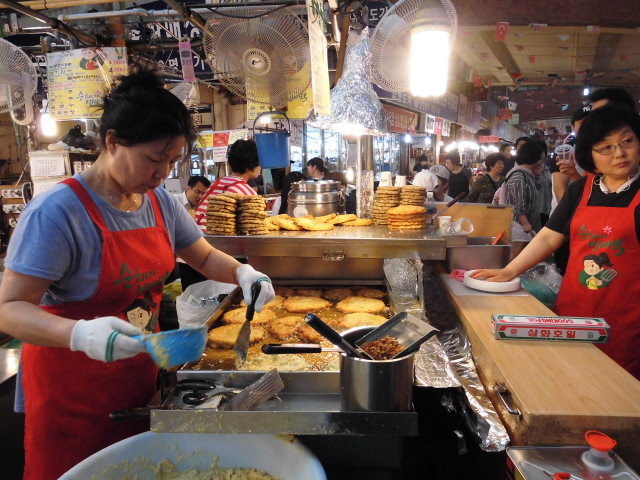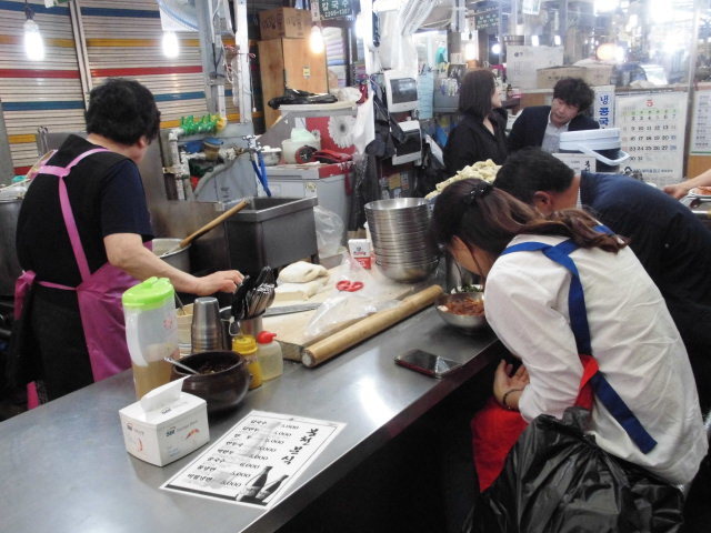 광장시장안 중국인 먹거리 찿아 줄서