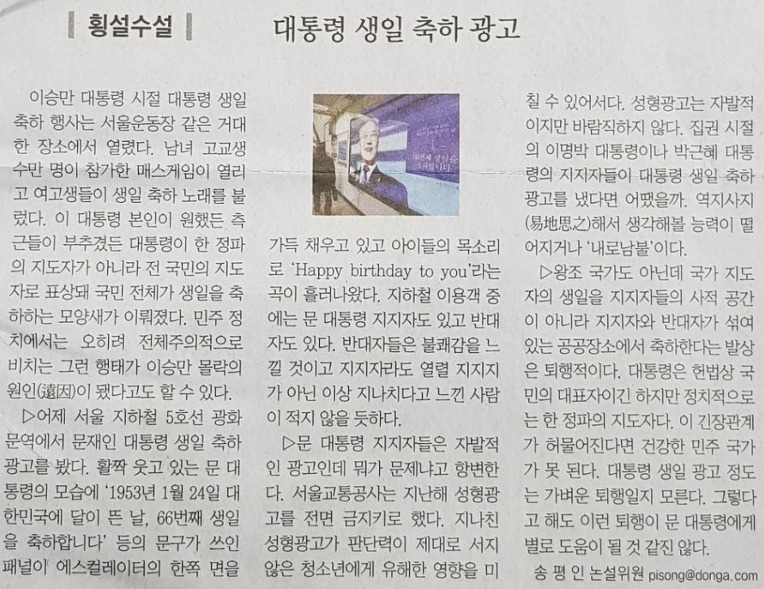 문빠들이 시내 곳곳에 광고판까지 설치하고 문재인 생일축하 놀이에 신이 났다.