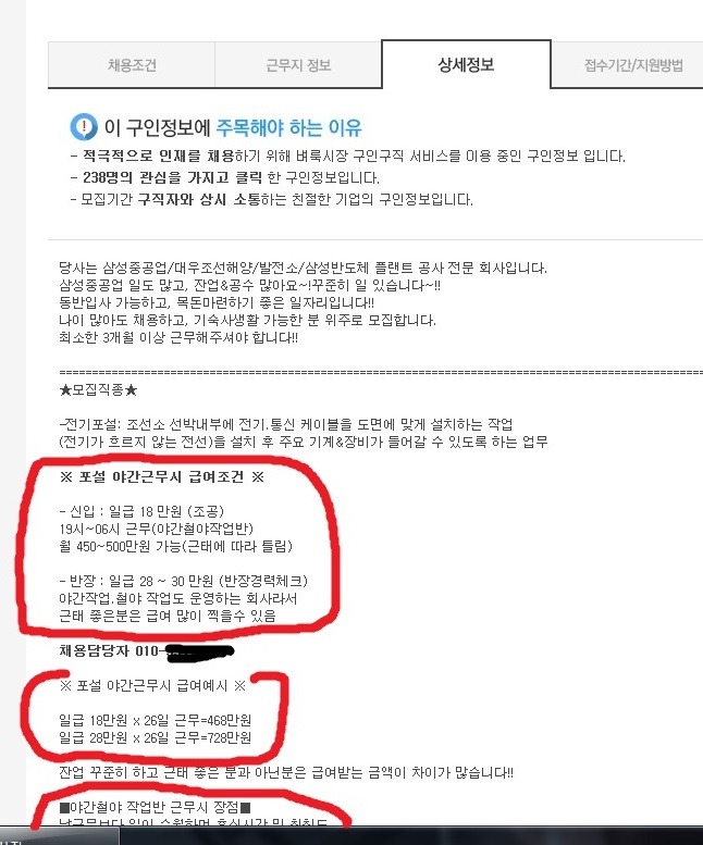 -광고에서 처럼 초보 일당 18만원 이라는 야간철야작업은 없고,