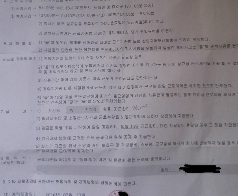 근로 계약서는 시급 7,700원.