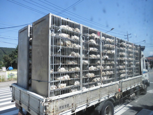 중계닭 주어로가는 풍경 소요산 인근 봉암리 대형 닭공장 눈에띄어 닭실은 트럭채 개근하여 닭값 산정 판매 중국인 및교포들이 일한다고 한손에 닭3마리 웅켜줘 이동 옵기는 작업을 한다고 닭 지쳐 죽는놈들 차운행중에 많타고 무더위에 비좁은 닭장에 시달려