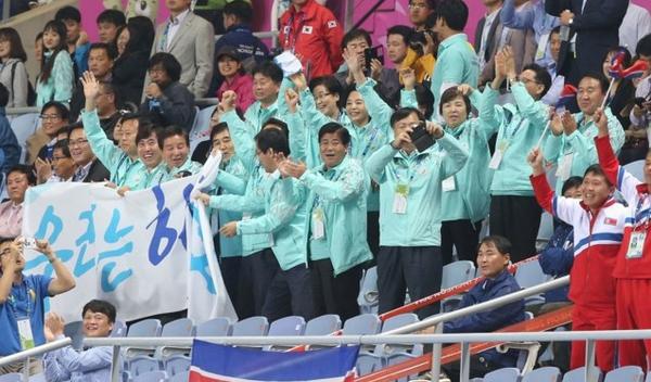 북한이 우리나라 인천에서 자신들의 체제를 선전하는 응원하는데도 그저 헤벌레~!
