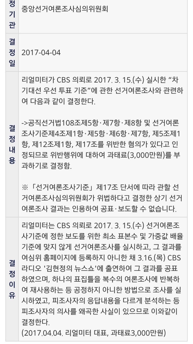 대한민국은 지금 조작 공화국인가? 리얼미터 조작 선관위 벌금♥♨