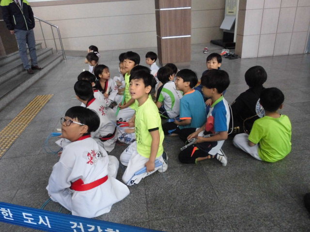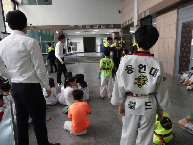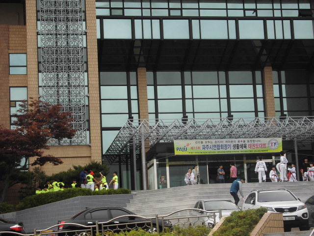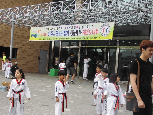 파주시 체육연합회 주체 관내 청소년소녀 태권도 경진대회 열기는 대단해 학생 학부형님들 자기차안에서 출전할 자녀 도복입히고 북새통을쳐