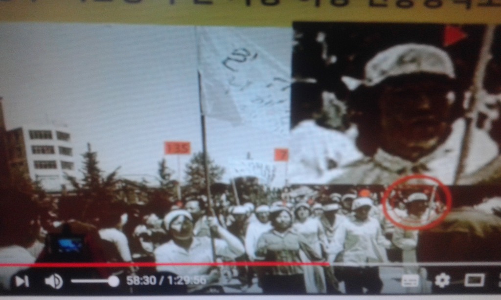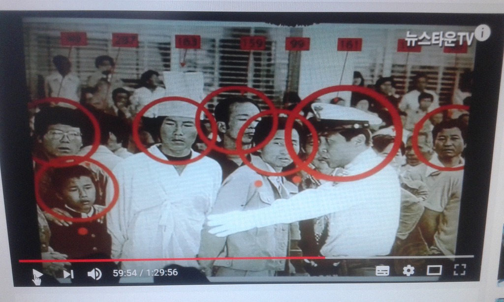 이 여성들이 여성 518 침투 간첩, 머리에 흰띠가 간첩 비표입니다. 동그라미한 여성을 아래에 확대함.
