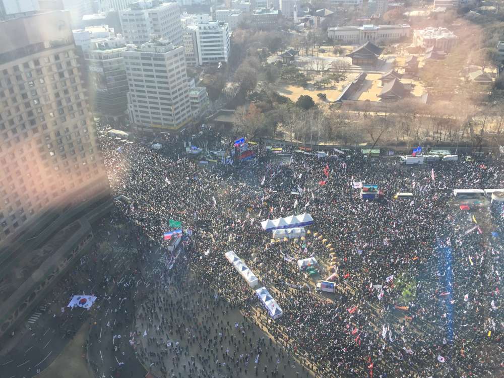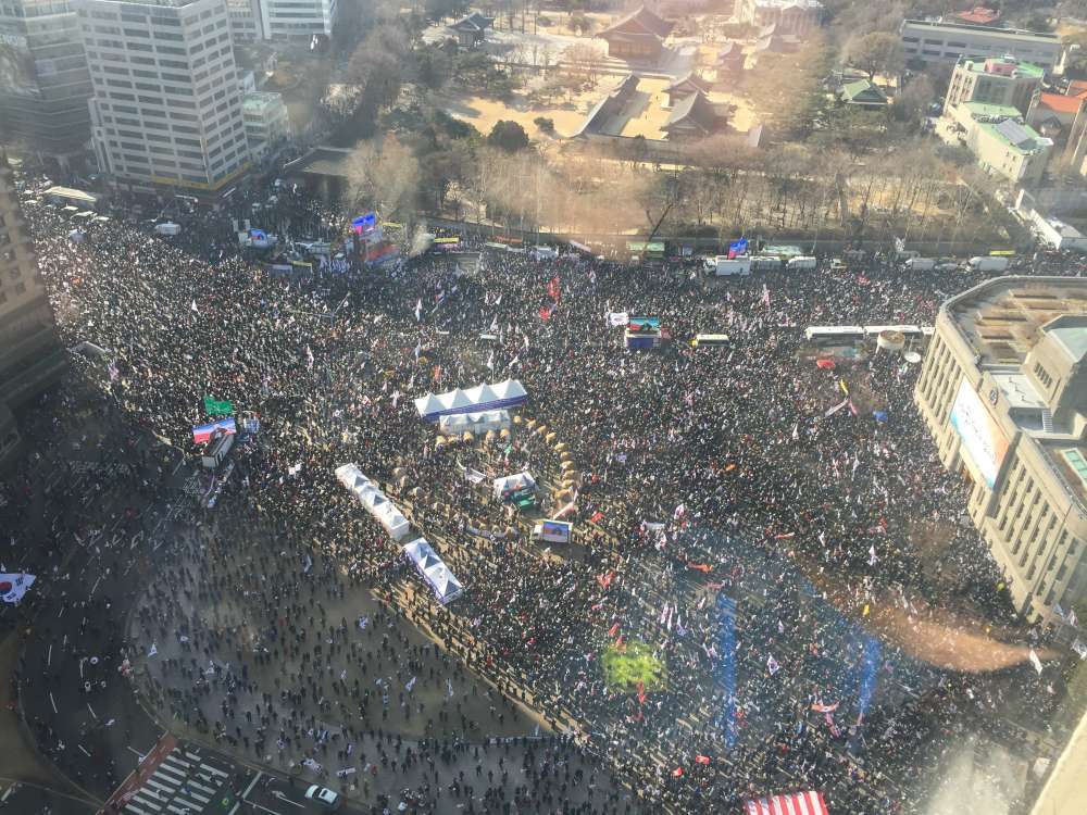 프레지던트 호텔 꼭대기서 (30층) 애국 집회 사진 찍은거다.. 오늘...