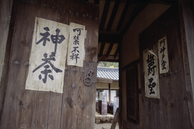 『산해경(山海經)』에, 동해의 도삭산(度朔山)에 거대한 복숭아나무가 있는데, 3천 리에 걸쳐 서려 있다. 그중 낮은 가지가 동북쪽으로 향해 있는데, 이를 ‘귀문(鬼門)’이라고 하며, 이곳을 모든 귀신들이 출입한다.