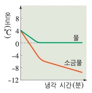 그리고 용액이 얼 때는 용매만 얼기 때문에 농도가 점점 진해지고 어는 점이 내려갑니다.