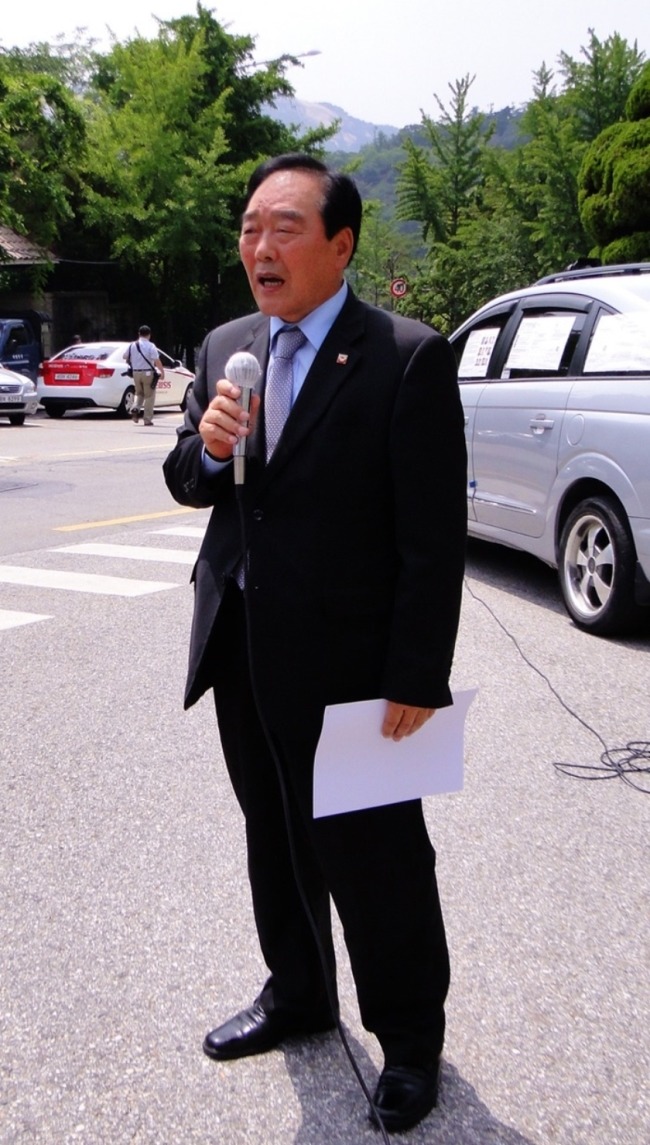 △박흥식 부정부패추방실천시민회 상임대표가 8일 오후 서울 종로구 감사원 앞에서 열린 ‘서울시, 참여연대, 서울메트로 등 감사원 감사청구 기자회견’에서 규탄연설을 하고 있다.