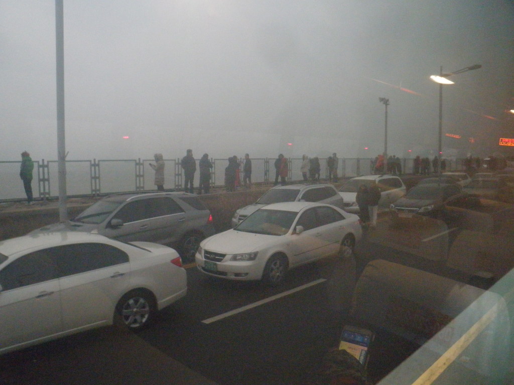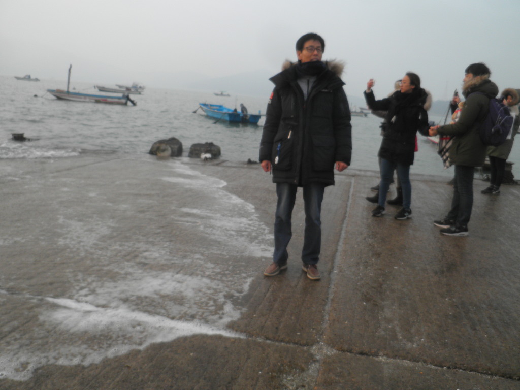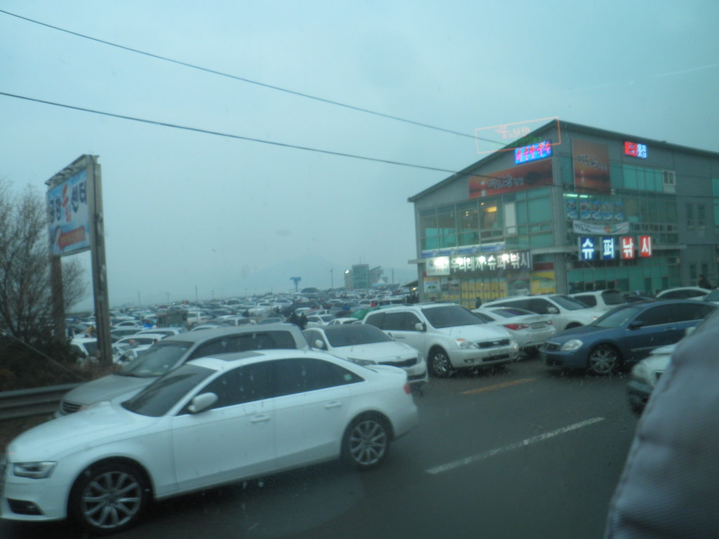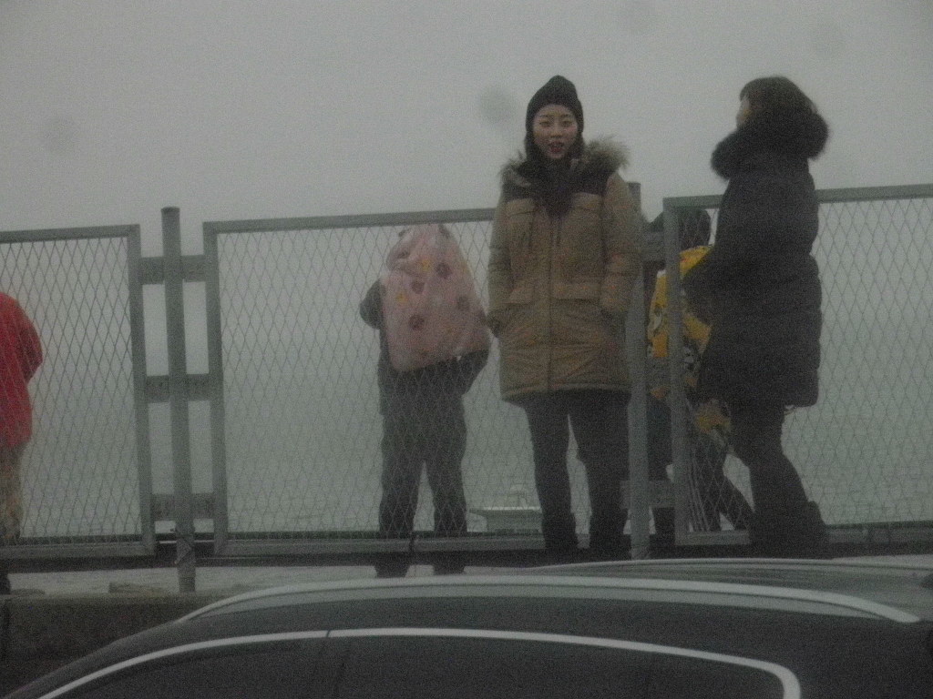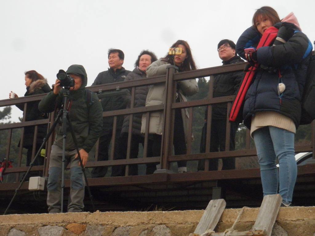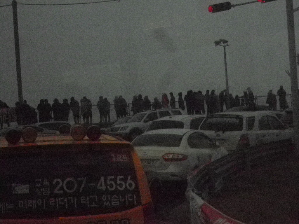 바닷길 짙튼 해무가 가득끼여 7시48분 해님얼굴 못봐 광관객 실망하고 금새 대로변을 몰려나와 귀가 발길 허탈한마음 않탑까워