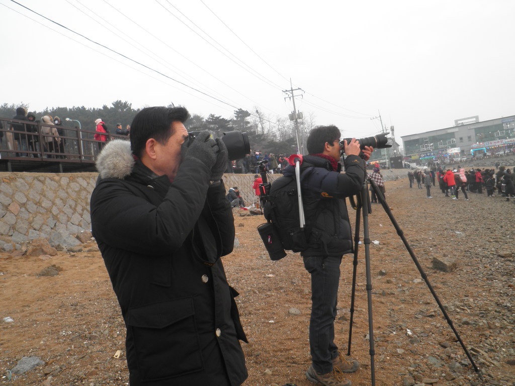 [해돋지군중풍경 동영상으로 20캇트논객 담아 ] 방송사들도 2017 해돋지 뉴스 영상 촬영팀도 눈에띄여 동해로 남해로 서해로 각팀 촬영출장 보내 영상화면확보