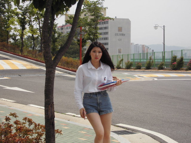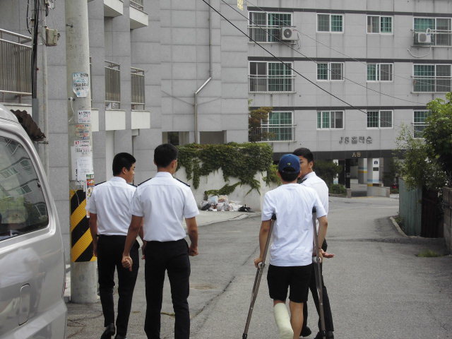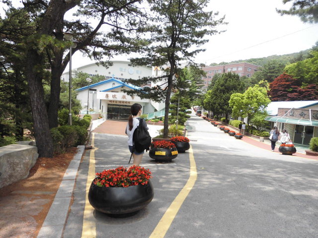 학생기숙에서 학교로 나오는 학생들모습