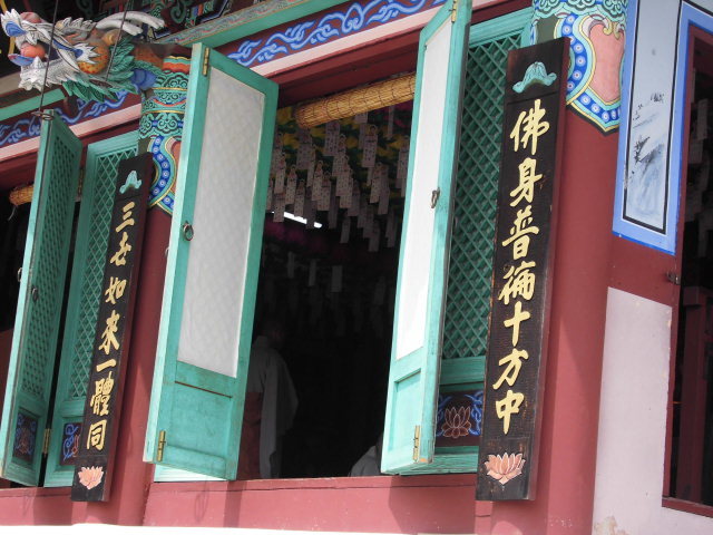 호국로1120번길 관음사 사찰 10시30분 사찰내 승님의 예불 독격소리 들려 법당안을 침견해봐 노스님 2분 목탁과 징을 치시며 간절한 수행 예불 독송소리 가숨에 흡입돼어