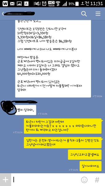 일을 그만둘때 2주전에 이야기안했다고 2틀치를 받지못하였고 인센티브도 받지못하였습니다