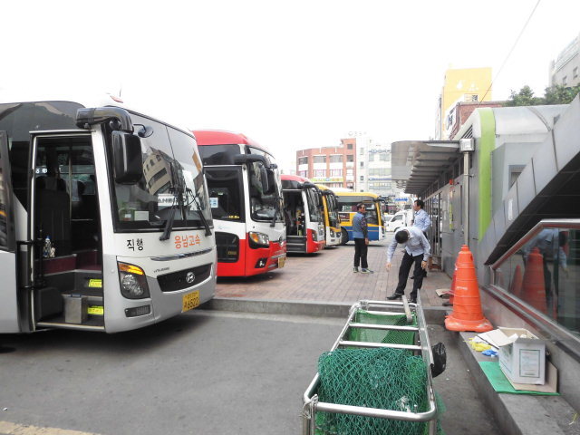 안양역사앞 광장맞즌편 지방운행 고속버스 매표장찿아봐 주로 경기 충청권 남행 으로 로선 잡아
