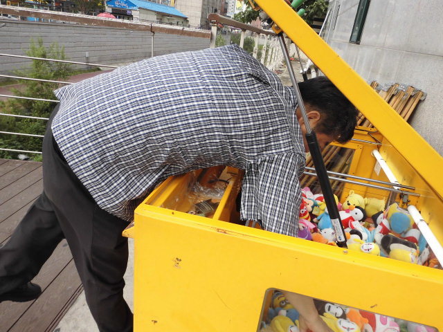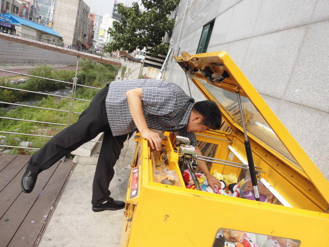 60대뽑기부스에 물건챙겨 정리해놓고 그동안 돈들려온 수입 돈챙겨 얼마인지 기계몇대 곧곳에 설치 하루돌며 영업전선에 뛰어들려 시작한지 얼마않돼어 나이들려 할것없어 취미삼아 이직전선에 우연한기회에 손댇게 돼었다고 인터뷔에 응해주셔 ,,,