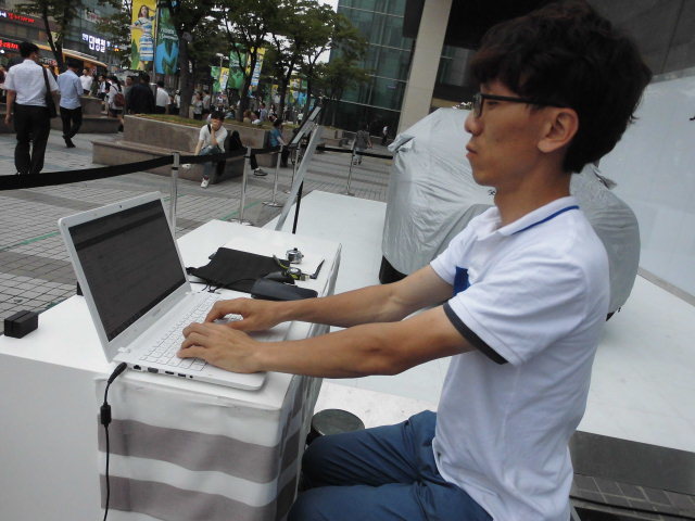 안양역사출구앞에 노상에 한쪽면엔 외국수입차 제큐어 홍보대행 업채직원 모습 전시연단에 세워둔차 덥게 포장쳐놔 전시시간 관람마감이 돼어 차모습가렸다고 답해 그럼오늘 엄무 작업일찌 를 꼭쓰느냐고 질문하니 제큐어 본회사 지원이 아니라 광고대행 행사회사 위임이라고 필자 그런것도 다단계하청주느냐고 일침