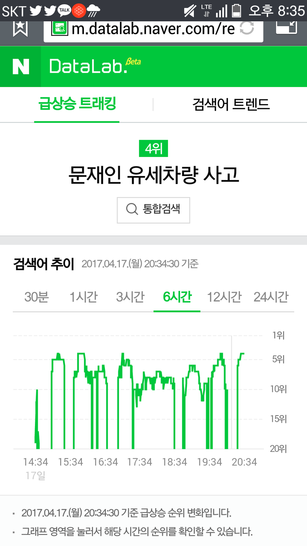 문재인 유세차량 사고 검색어 그래프는