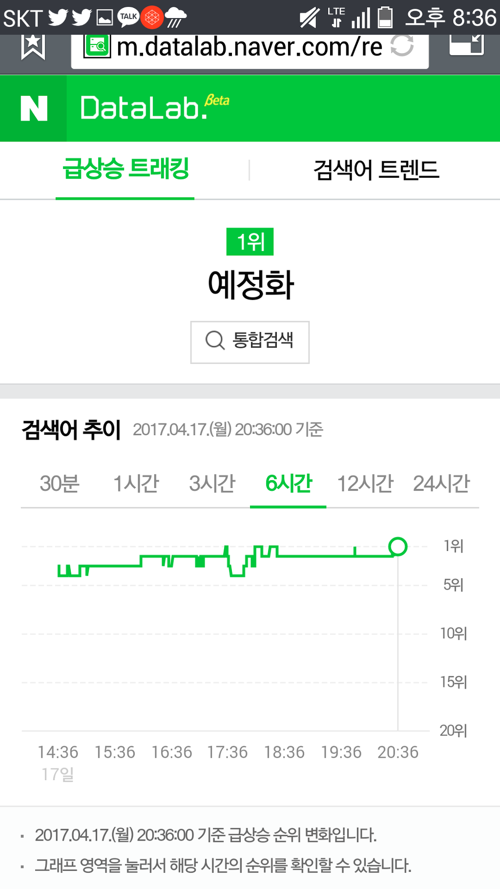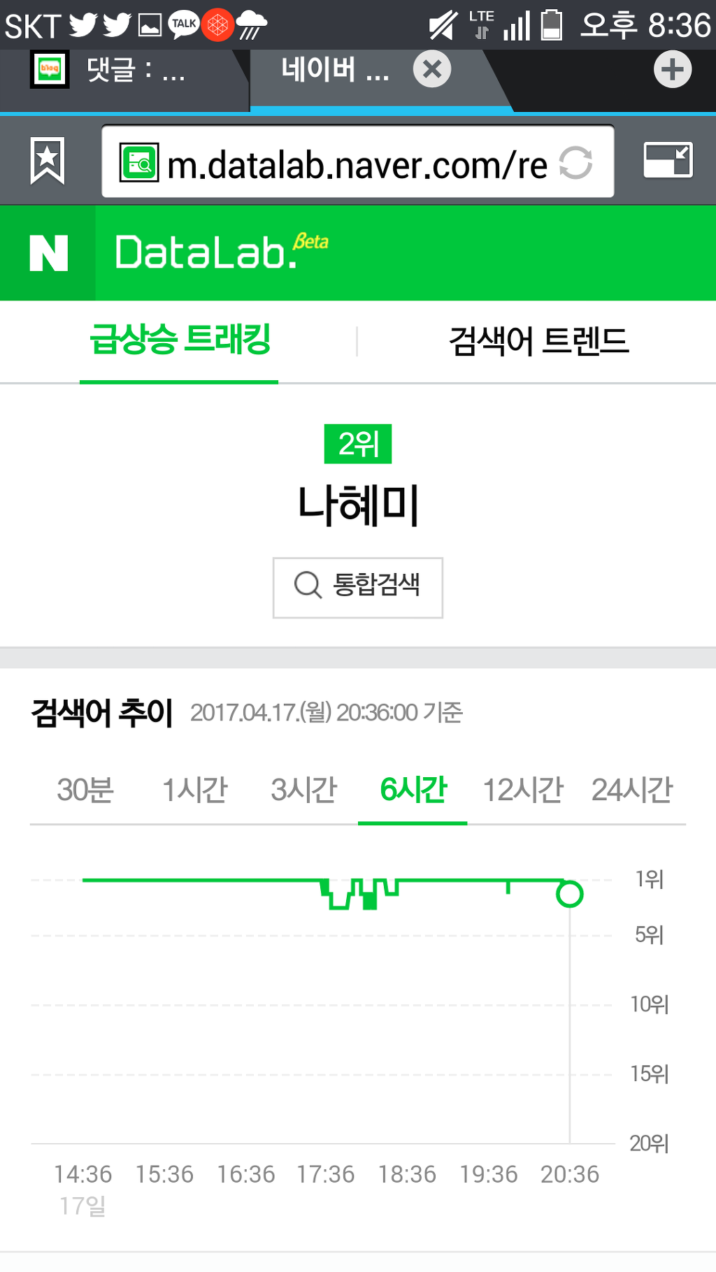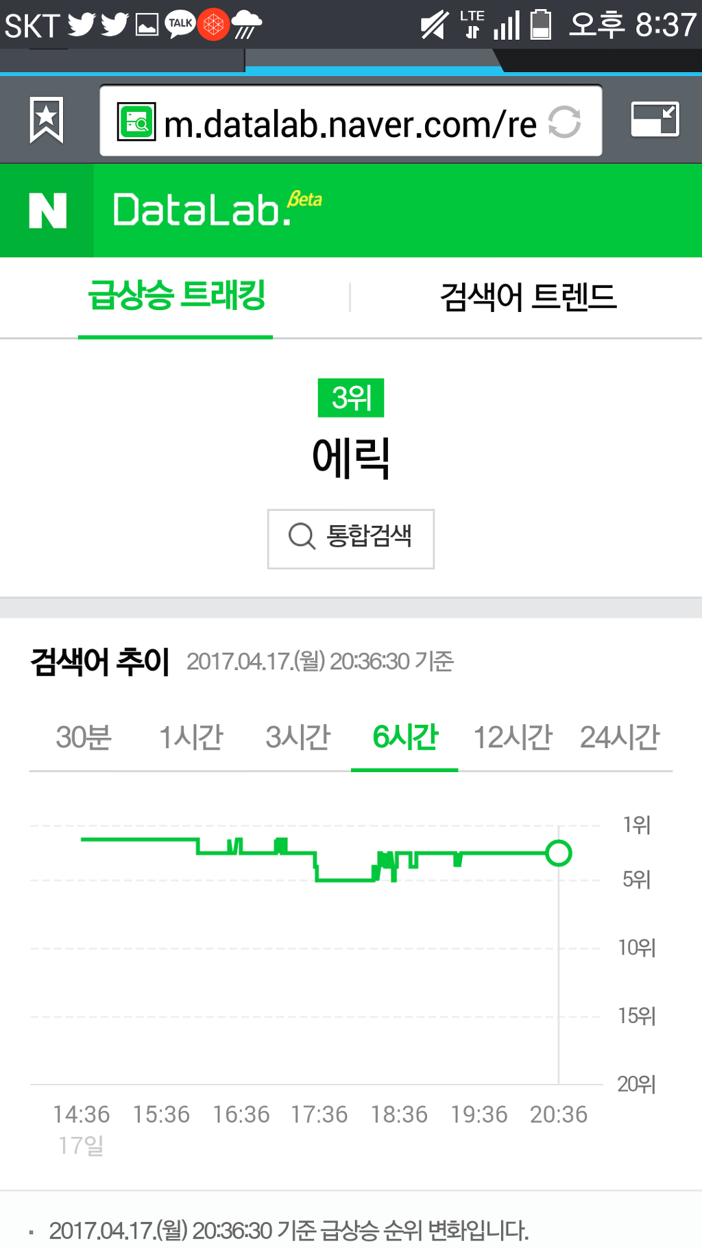 순위에서 순간 사라졌다 다시 나타나기를 반복한다.