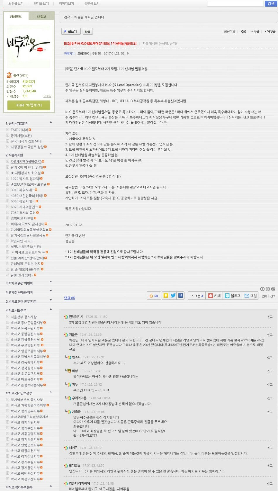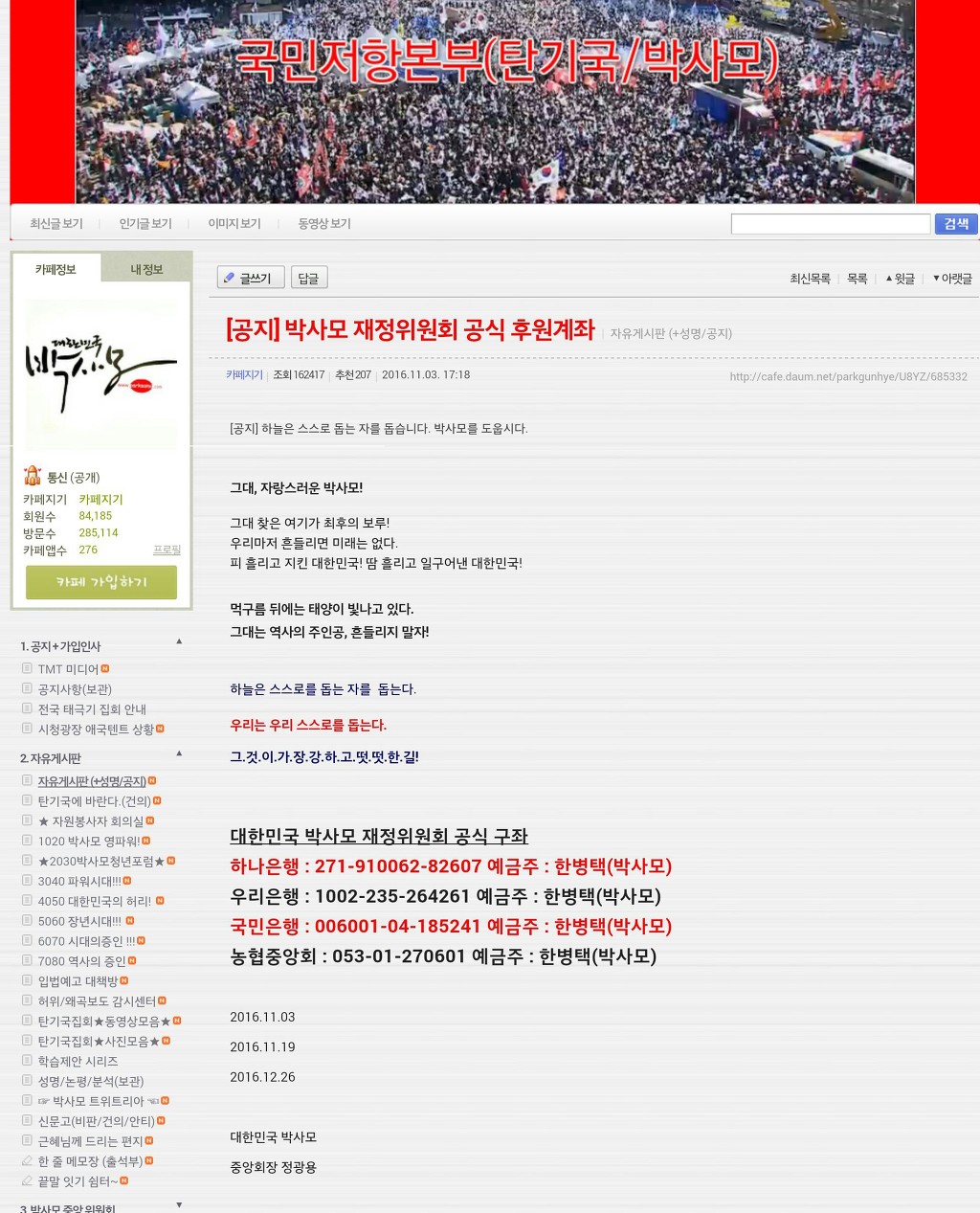 근혜사랑 근혜동산 등 무수히 많은 친박카페와