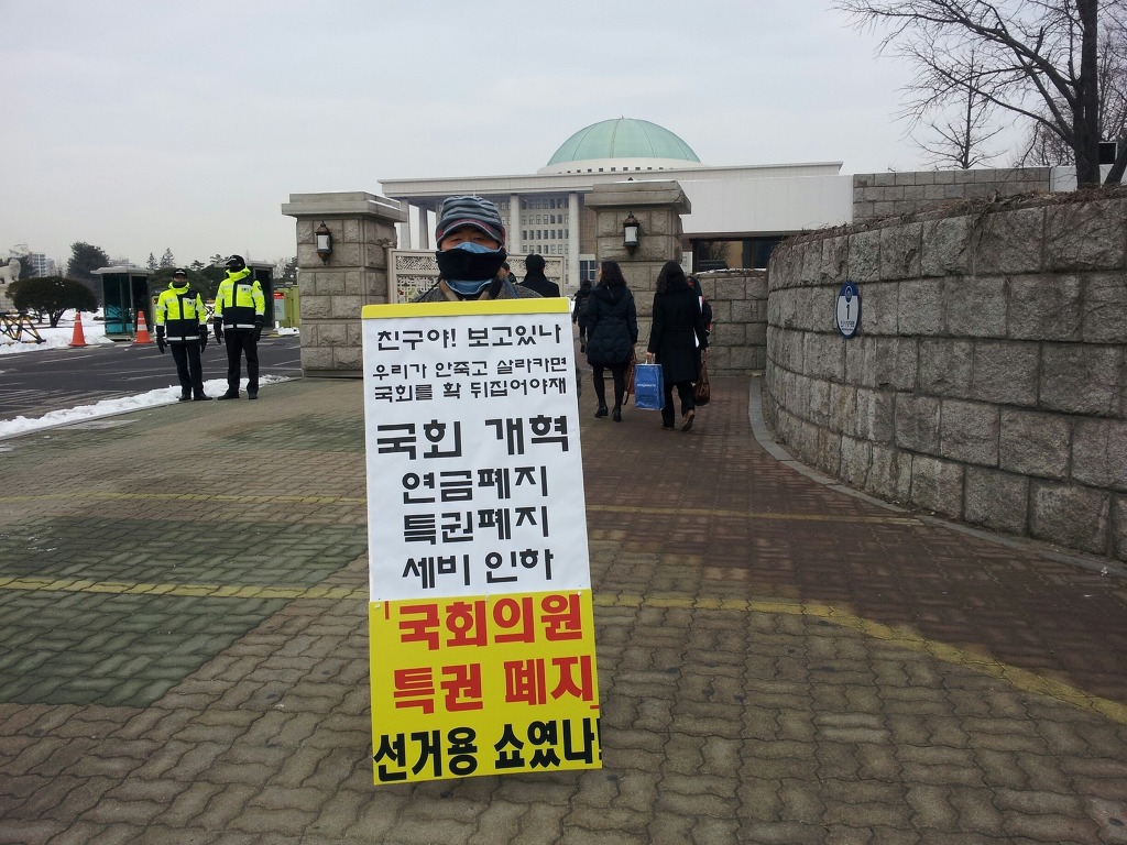 본인은 지난2013년1월4일 영하15도의 한파가 몰아친 날 8시간 동안 국회정문에서 국회의원