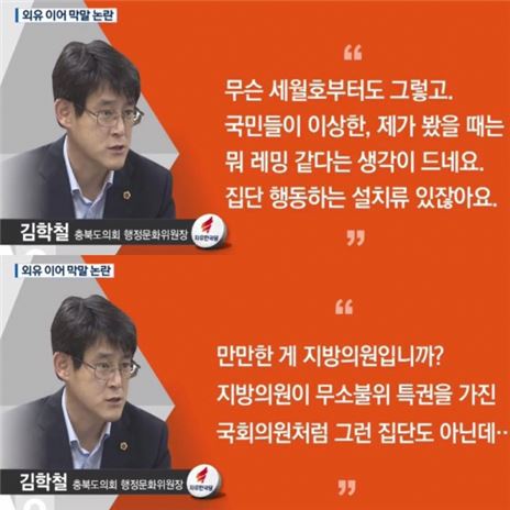 이날 집회에는 김학철·박봉순·박종규·윤은희·임병운·임회무 도의원 등 자유한국당 소속 충북도의원 6명도 자리했다.