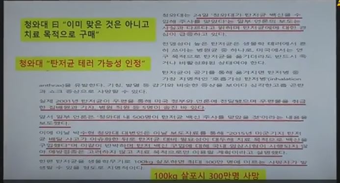 이번 탄저균 백신주사 청와대 문제인들만 맞았느니 안맞았니 말이 많아지니