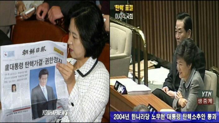 추미애 후보는 2004년 노무현 당시 대통령 탄핵에 찬성 표를 던졌다.