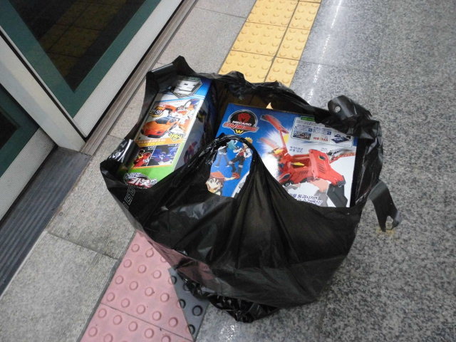 어린이들 장난감 아침 까치산역사에서 강서공항 송정역까지 이동30대 아줌마 물건얼마너치 돼느냐고 묻으니 20만원 화곡경인도로 물류유통 도매상에서 어제구입 호주에사는 조카가족에거 보내려고 삿다며 호주는 한국 물건값의 3배이상 비싸 물건을 호주로 붙치는값 드려도 헐씬호주보다 장난감값은 싸게 먹흰다며 세종류의 셋트라고 말을 전해줘,,,