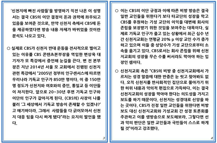 '신천지에 빠진 사람들'을 방영하기 직전 나온 CBS노조의 성명서는 결국 CBS의 이단 결정이 돈과 권력에 의해 좌우되고 있음을 대변해주고 있습니다.