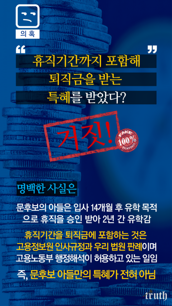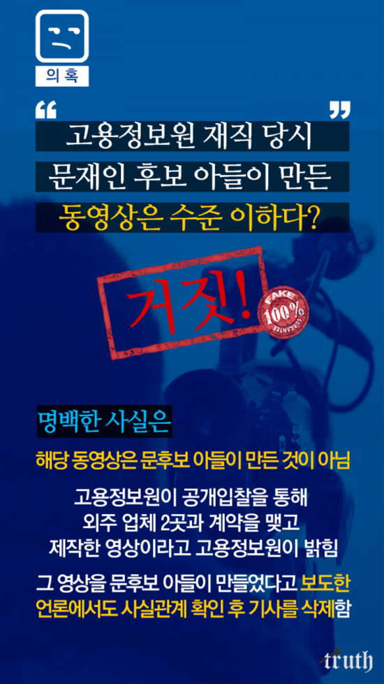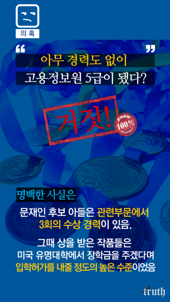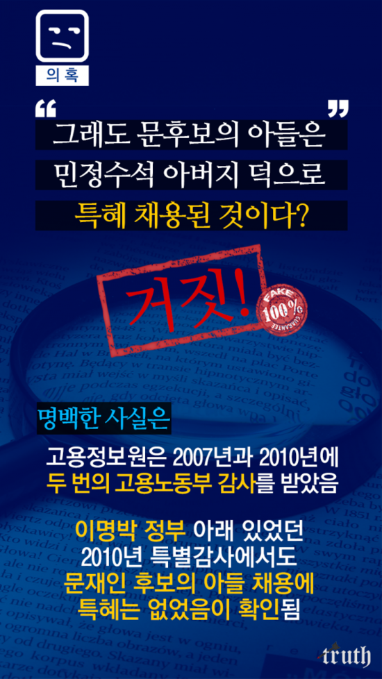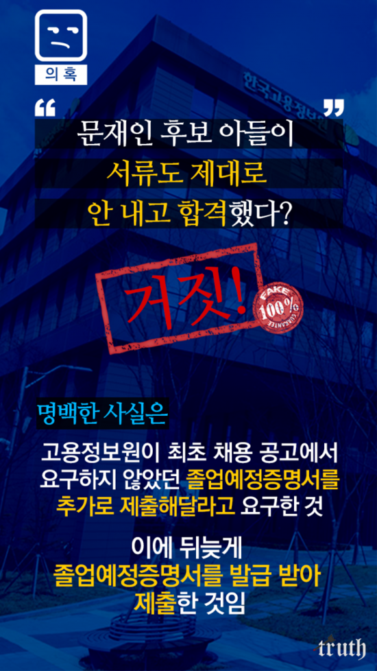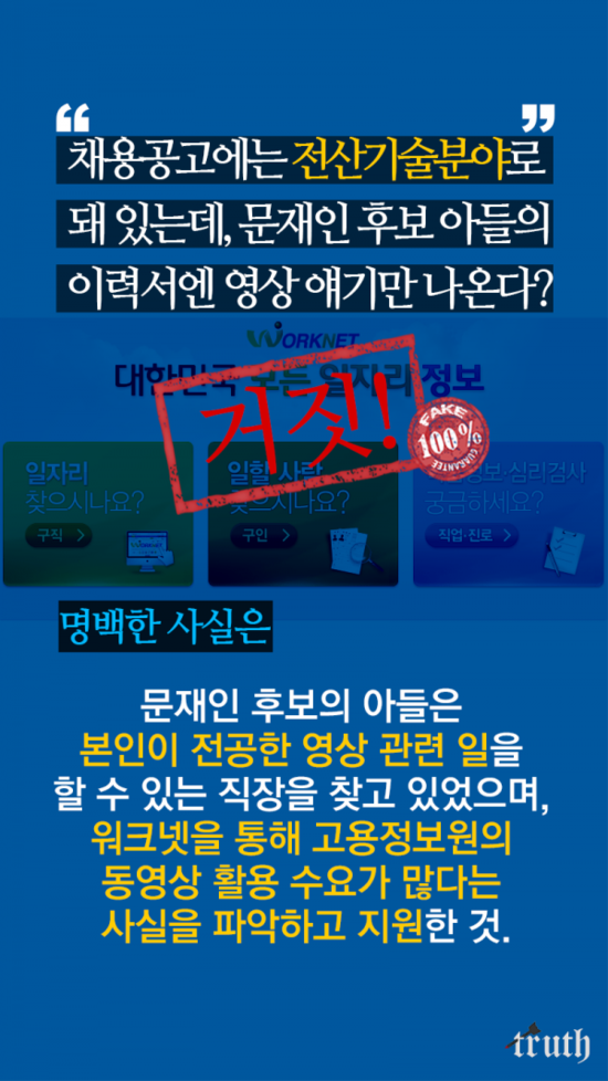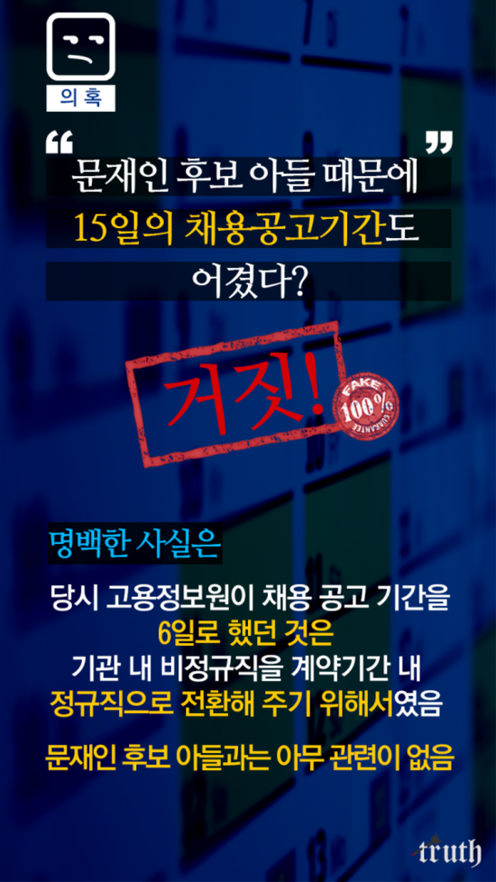< 문재인 아들 특채? 허위사실! 유포하면 처벌받을 수 있다 >
