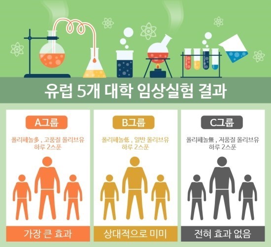 올리브유 속의 영양소인 폴리페놀에 대한 실험을 진행했습니다.