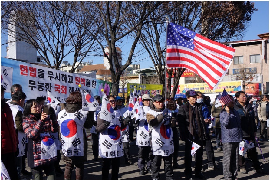 성조기를 드는 이유에 대하여 현재남북한은 미국이 없었다면 존재가 불가능하다. 우선 미국이 아니면 한국은 일본식민지로 부터 독립을 할수 없었다. 태평양전쟁시 미국이 일본 히로시마에 원자폭탄 투하로 일본천황 히로히토가 항복한것이 원인이 되어 한반도가 독립할수 있게 된것이다. 그리고 6.25전쟁시 미국이 적극적으로 도와 공산당을 막아 자유민주주의로 있게한것 과 6.25 전쟁 이후 엄청가난 했든시절 식량원조로 극빈자들 굶어죽지 않게 한것 등등으로 크나큰 은혜를 입었으니 그 은혜를 잊지말고 성조기라도 덜어 주는것이 도리이다. 라고 생각된다. 은혜를 받았으면 잊지를 말고 은혜를 베풀었으면 보답을 바라지 말라는 공자님에 말씀이 있다. 이런 이유에서 민심은 천심이라고 하는 것이다.
