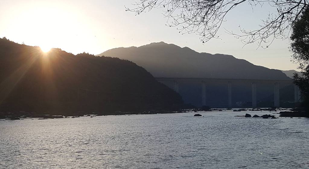 사진설명 : 아침의 해가 뜨고 있는 섬진강대교의 모습이다.