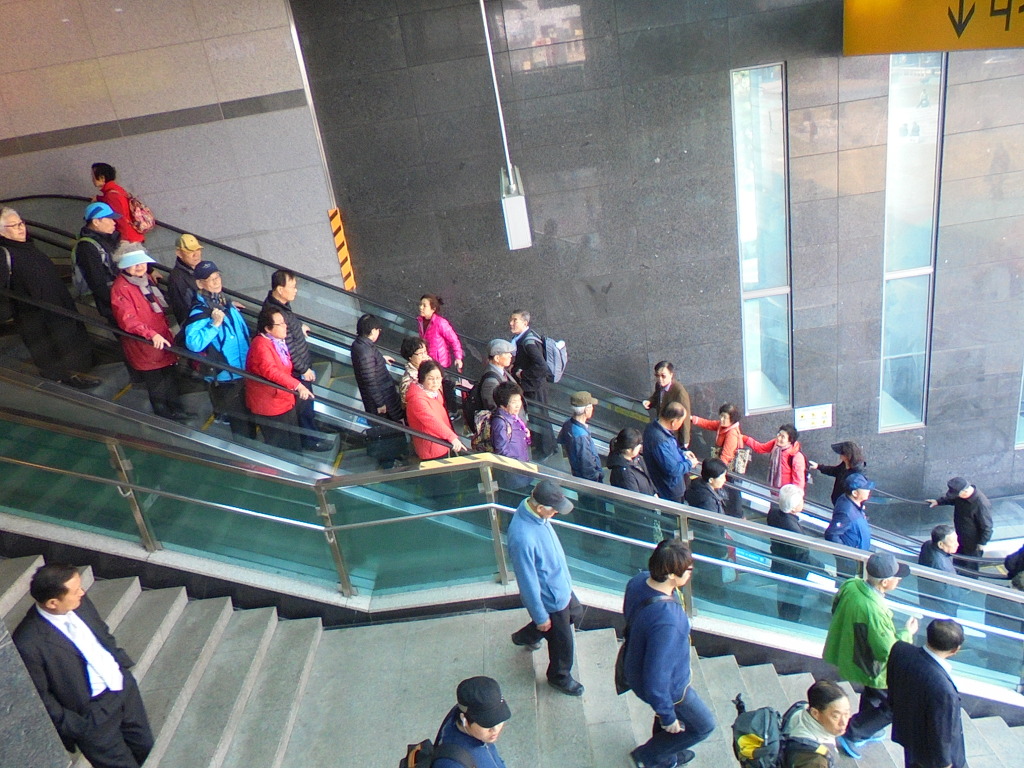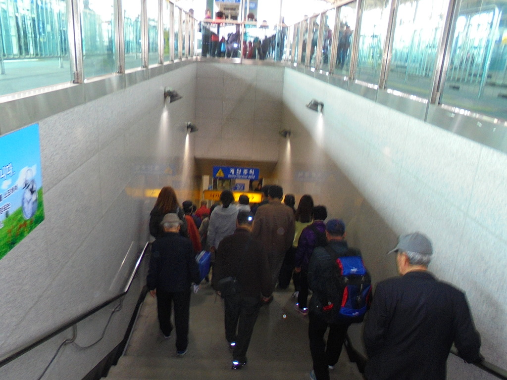 역사로 내려가는 계단출구 승객들