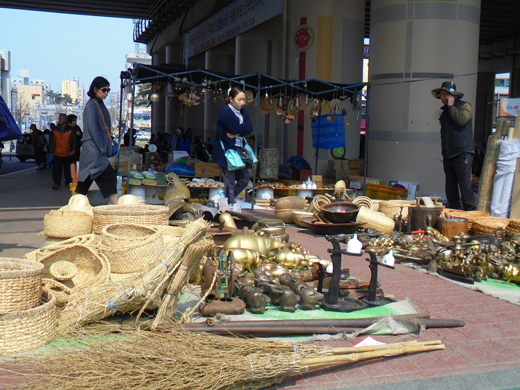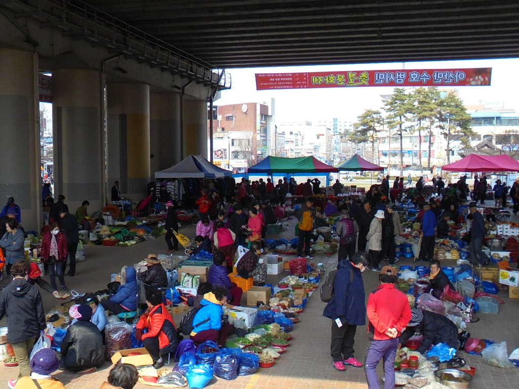 충남 아산온양 전통 5일장 현장취재 4ㅡ9일장서 온양역사 건물 교각아래 장판 벌려 봄햇살 따사로운 오후 인파부벼