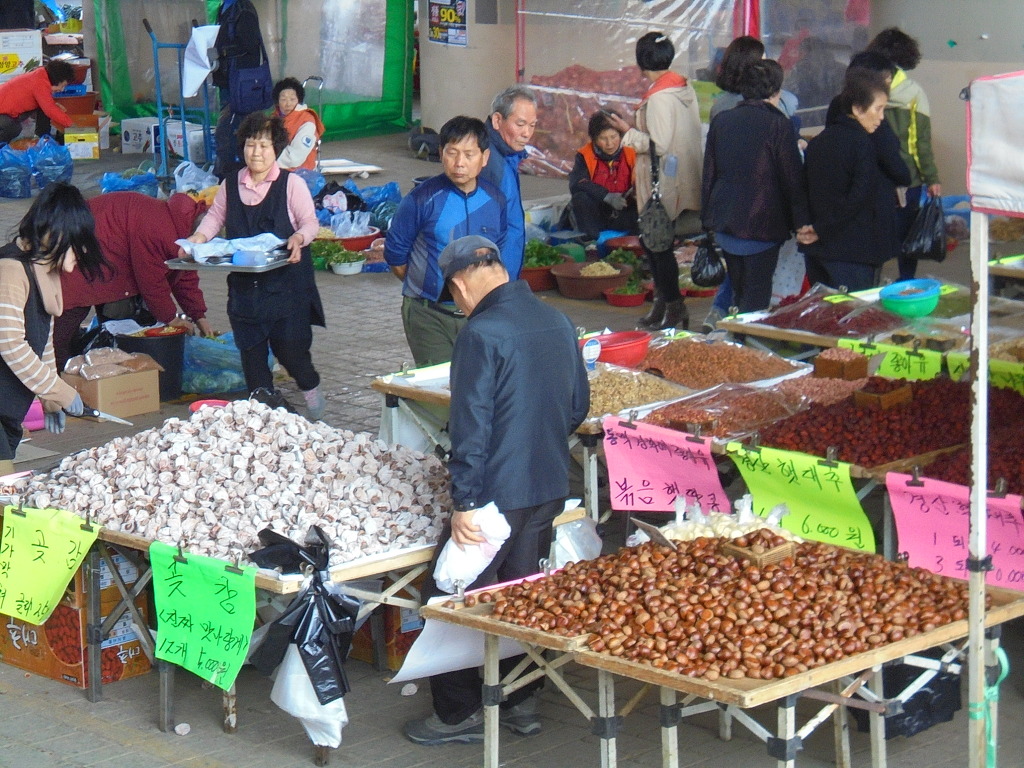 오만가지 지역 공상품 농축산품 생활 필수품 노점진열 판매상 동정살려 먹거리 풍경및 봄맞이 나뭇화웨 다양한 물건 팔아 역사건물에 지역노인 복지 기관운영 아산시 지속기능 발전 협의회 실비쉼터 시설공간을 갖춰 장기 바둑 탁구 카페 찻집 독서