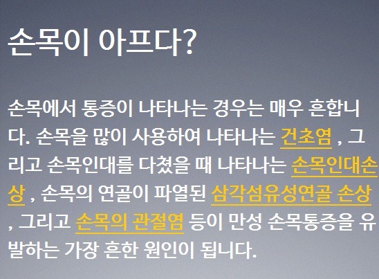 손목통증 손목터널증후군 정말 제대로 비교해서 치료하려면 어떻게 해야 할까요? 지금부터 그 방법에 대하여 한 번 자세한 설명을 해보도록 하겠습니다. 손목터널증후군은 사실 손바닥통증이 나타나는 질환이며 손목통증은 손목이 아픈 질환으로 다른 질환입니다.